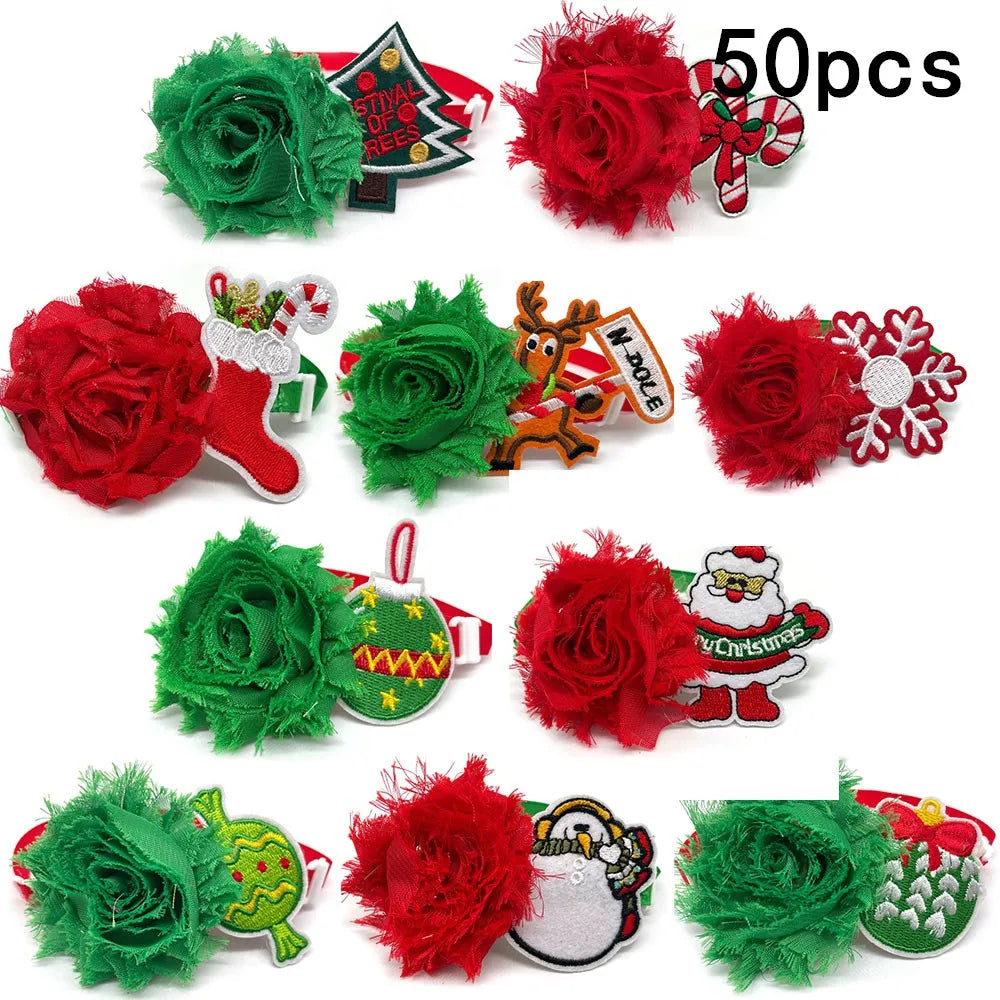 50/100pcs Christmas Dog Accessories Dog Bow Ties Snowman Deer Christmas Tree Dog Neckties Dog Bowties Grooming Supplies
